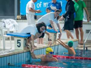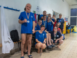 Ancora una meravigliosa giornata di Sport, di condivisione, di amicizia, che ha regalato tante emozioni, tanti sorrisi e tanta allegria a tutti i partecipanti, al di la’ di ogni risultato sportivo ottenuto, atteso, o peggio non arrivato. Ma i nostri atleti speciali lo sanno bene: il nuoto è uno sport duro, richiede anni e anni di allenamento per arrivare a piccoli miglioramenti del rendimento: si tratta di perfezionare al massimo la tecnica, un’impresa che richiede allenamenti molto lunghi e intensi. E’ una caratteristica trasversale ad ogni sport: quella di avere, in genere, un potere attrattivo, che non ti fa mollare mai il pallone, la sbarra, la racchetta, che ti fa scendere ancora una volta in vasca; il nuotatore impara dalle sconfitte più che dalle vittorie perché le vede come opportunità di miglioramento o di riscatto. La motivazione nel nuotatore è come una dannazione perché, anche quando si è segnato il tempo di gara più soddisfacente, non scegli di fermarti ma di continuare a ricercare una nuova migliore performance.  Questo è quanto imparano tutti i giorni dai loro allenatori, che li seguono, li accompagnano e li spronano a dare sempre il massimo.